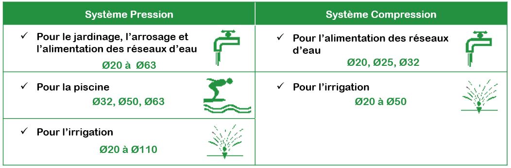 GIRPI vous propose sa gamme de tubes et raccords pour la réalisation de votre réseau de distribution d’eau froide, le plus souvent utilisé pour le jardinage, l’irrigation et la piscine.