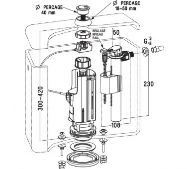 CHASSE D'EAU À CÂBLE + ROBINET FLOTTEUR