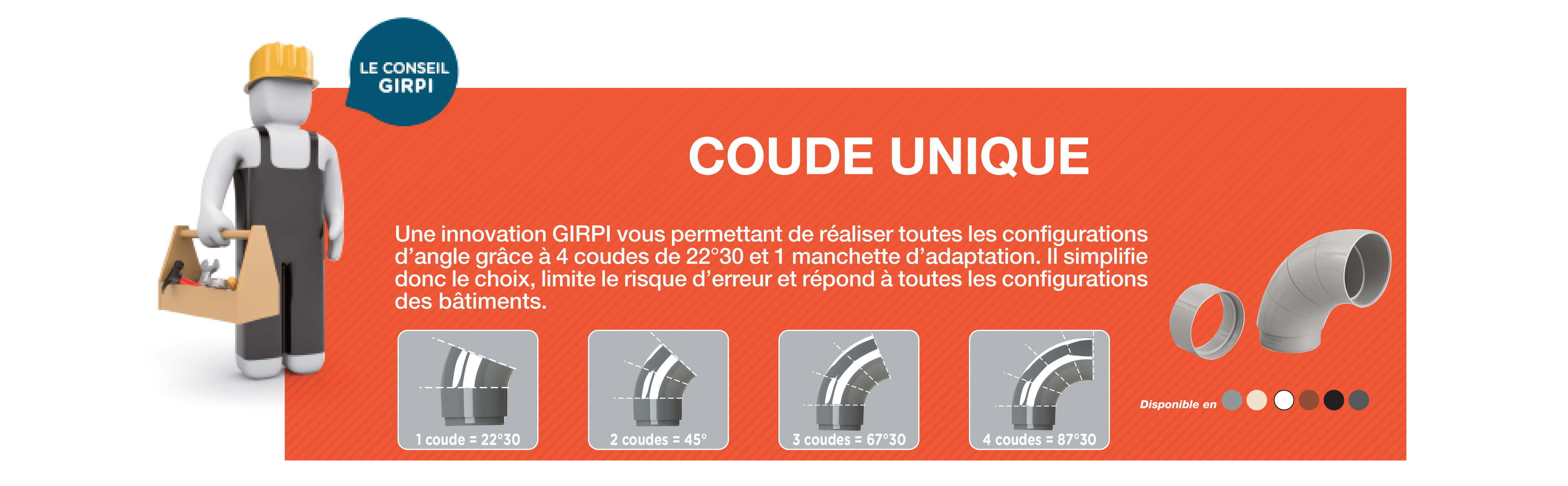 – Contient 4 coudes à 22° + 1 manchette d’adaptation