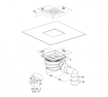 – Dimension du siphon : 10 x 10 cm