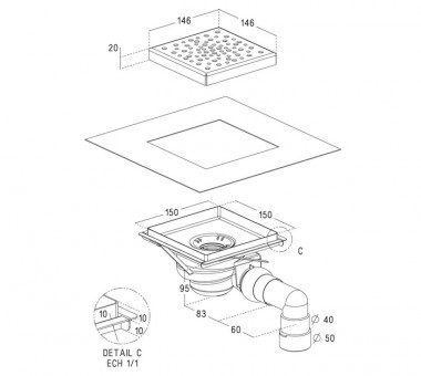 – Dimension du siphon : 15 x 15 cm