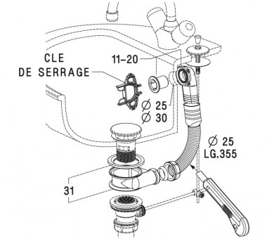 – Longueur du trop–plein avant recoupe : 355 mm