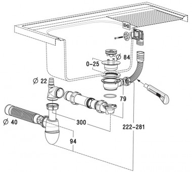 Pour évier en grès, 1 bac, avec trop-plein