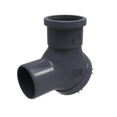Pied de chute doté d'une membrane élastomère, il amortit le bruit d'impact des eaux aux changements de direction. Son grand rayon de courbure facilite l'écoulement et son bouchon permet des opérations d'entretien simplifiées