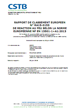 - Sécurité incendie : classement feu Bs1d0 (Euroclasses)